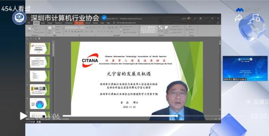 在本次活动下半场,主持人杨诚邀请北美华人信息技术行业协会会长余磊博士做《元宇宙的发展及机遇》主题演讲,同时还邀请哈尔滨工业大学(深圳)副校长张钦宇博士做《通信——从地球到深空》主题演讲。