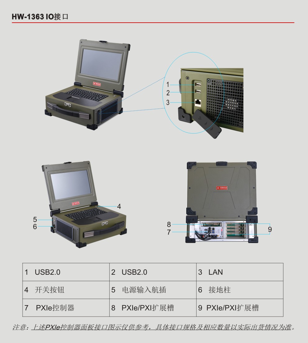 HW-1363是业界首款13.3''内置Intel® CoreTM 6th或9th或11th Gen i7四核八线程或六核十二线程或八核十六线程CPU嵌入式PXIe控制器、PXIe背板、高清显示屏和加固机箱的测控笔记本,此PXIe笔记本采用专业的工业外观设计、全铝镁合金加固紧凑型设计,集成13.3''高清显示屏、多点电容触摸屏或电阻触摸屏、工业触摸板、防水硅胶键盘和测控电源等,具有高集成、强固、便携等特点,适用于各种恶劣的户内外环境或测试设备便携移动的复杂工况。